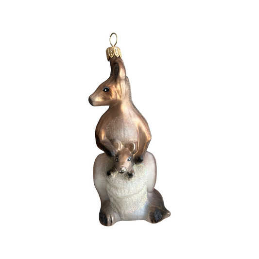Känguru mit Kängurubaby Christbaumschmuck Glas Tier Weihnachtsbaumanhänger