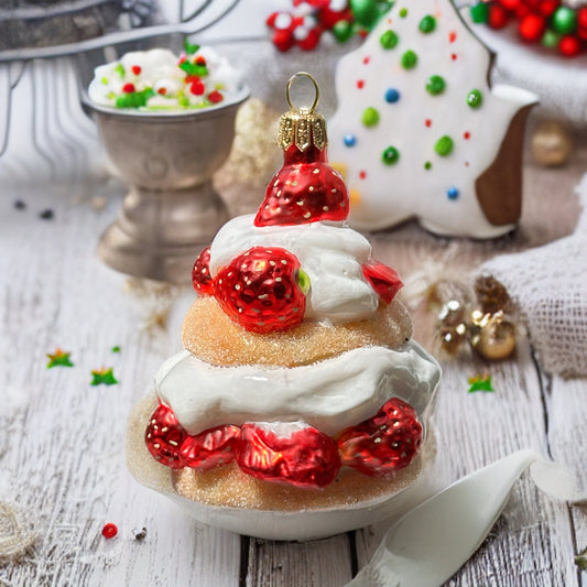 Erdbeertörtchen Christbaumschmuck Glas Weihnachtsbaumanhänger